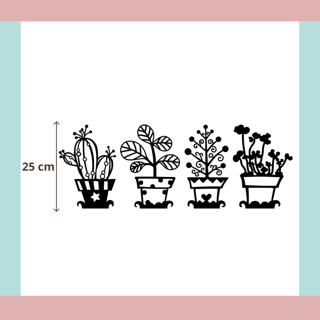 Set 4 macetas decorativas para decoracion de pared. Fabricado en fibrofacil.